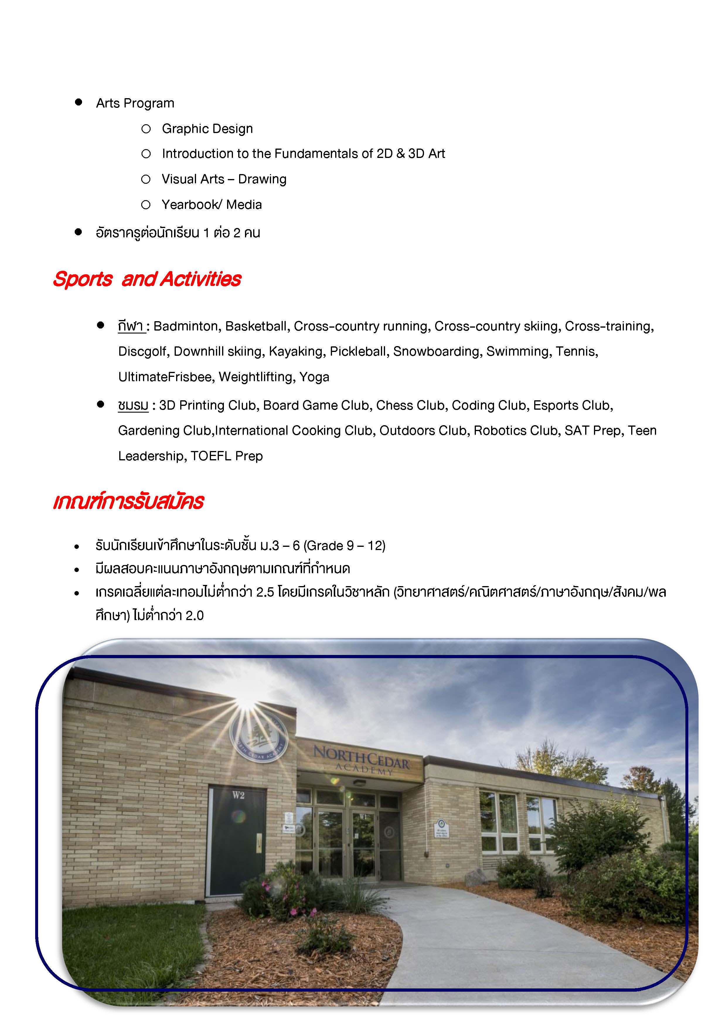 Download ข้อมูล North Cedar Academy